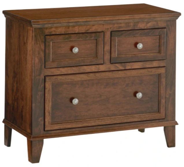 Brings timeless charm and practical storage to your bedside. Featuring three spacious drawers and a warm cherry finish, it offers a refined look with everyday function. Customize it to suit your space, blending craftsmanship and style for a seamless bedroom companion.Read More