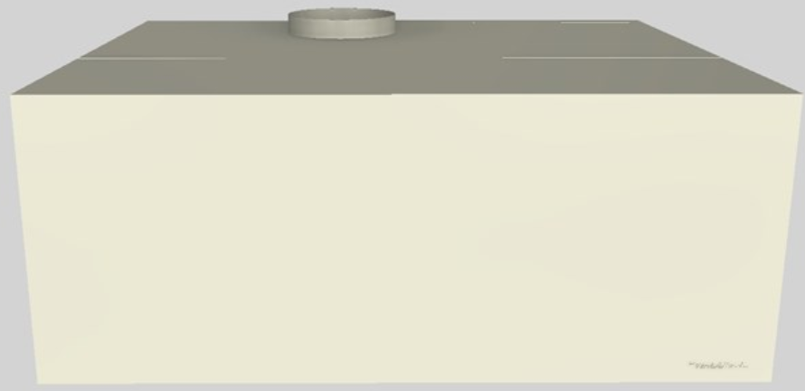 Stand-alone hood can have optional clipped or rounded corners. Add special offsets to create a lip. Optional rectangular, square or round duct covers are smart additions. Click on the models for a list of our base model numbers for standard sizes; simply select the model you need, and then specify the finish (painted, stainless steel, real brass, real copper, or hammered copper). Recommended mounting height is 30" above the cooking surface. All Vent-A-Hood products are suitable for use in damp locations (outdoor applications such as a covered patio) when installed in a GFCI protected branch circuit. Click here for details on how this hood may be back vented.