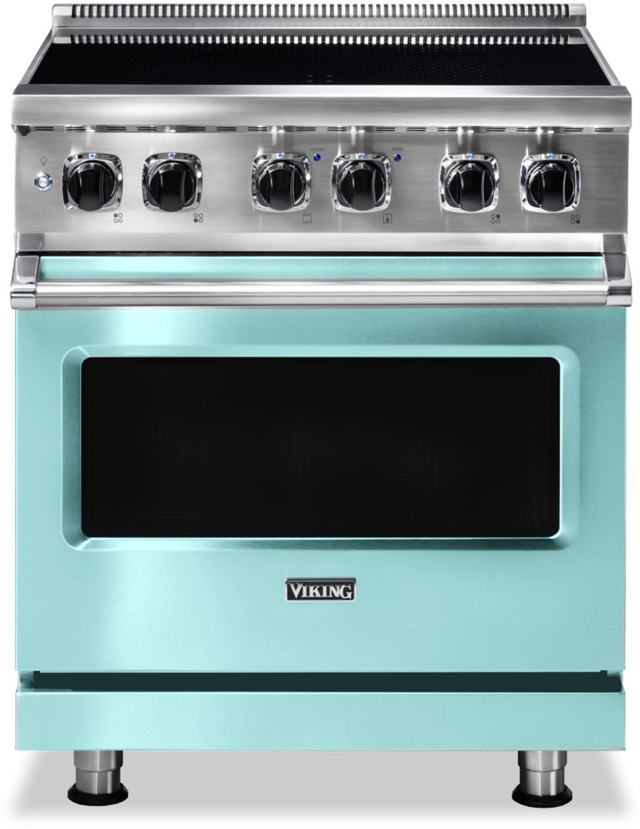 Viking® 30" Bywater Blue Freestanding Induction Range has Induction Elements convert electricity into a magnetic field, which reacts with iron in your cookware and instantly transforms the pan into the heat source.Read More