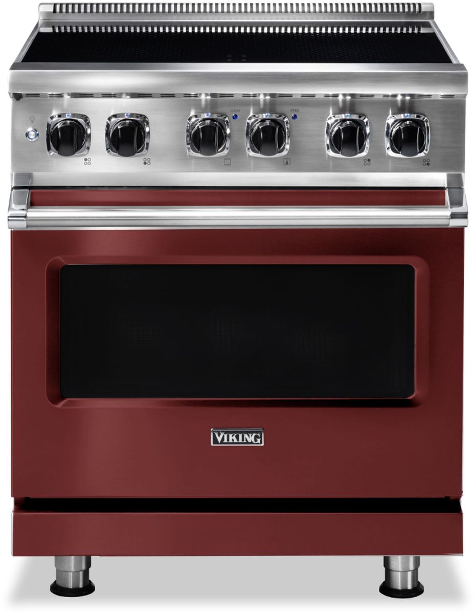 Viking® 30" Reduction Red Freestanding Induction Range has Induction Elements convert electricity into a magnetic field, which reacts with iron in your cookware and instantly transforms the pan into the heat source.Read More
